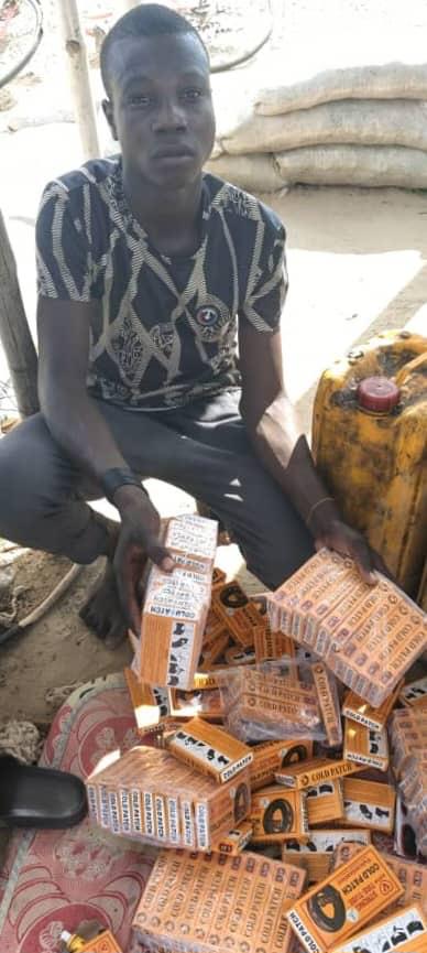 The source said that on Oct. 2, troops of 24 Task Force Brigade in conjunction with members of the Civilian Joint Task Force (CJTF) and local hunters, apprehended one Abba Wakil, aged 18, with two jerricans of condemned engine oil and 100 pieces of quick patch.