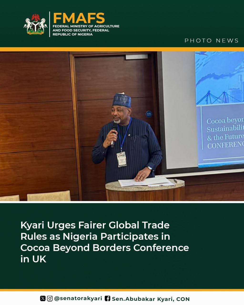 Kyari Urges Fairer Global Trade Rules as Nigeria Participates in Cocoa Beyond Borders Conference in UK